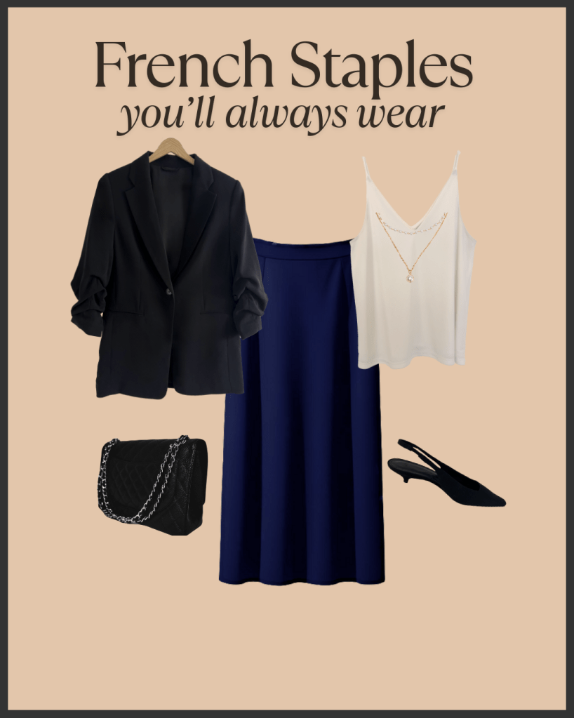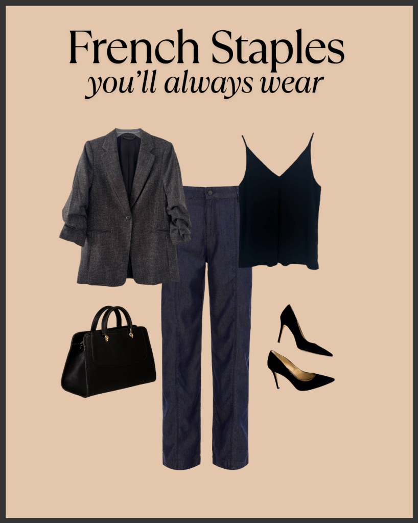 A silk camisole is a French staple and a great layering piece. Wear it under a cardigan for a relaxed weekend look or add a touch of sophistication by pairing it under a blazer. A solid, neutral colour adds versatility making it easy to mix and match and the silky fabric adds a beautiful contrasting texture to any outfit.
