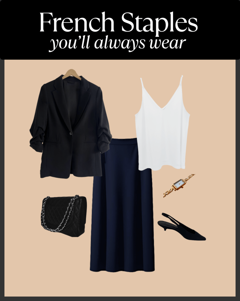 A blazer is one of the most essential and versatile staples in classic French style. It’s a piece that can effortlessly transition from day to night and be dressed up or down depending on the occasion.